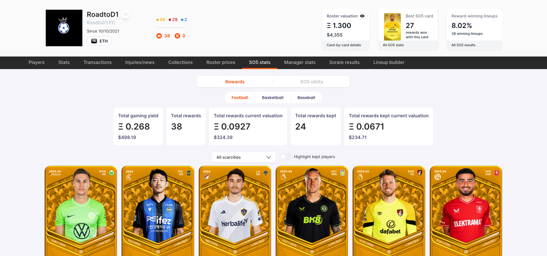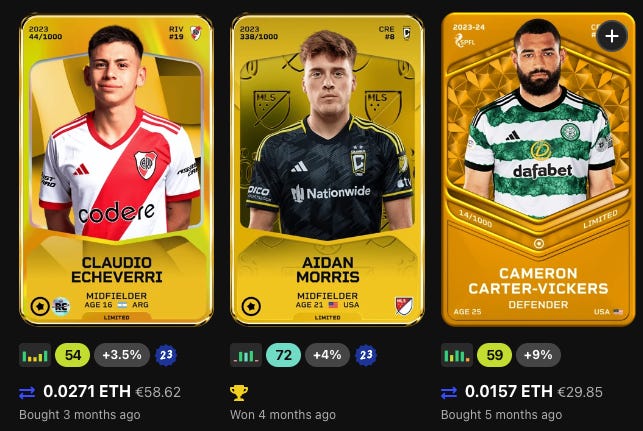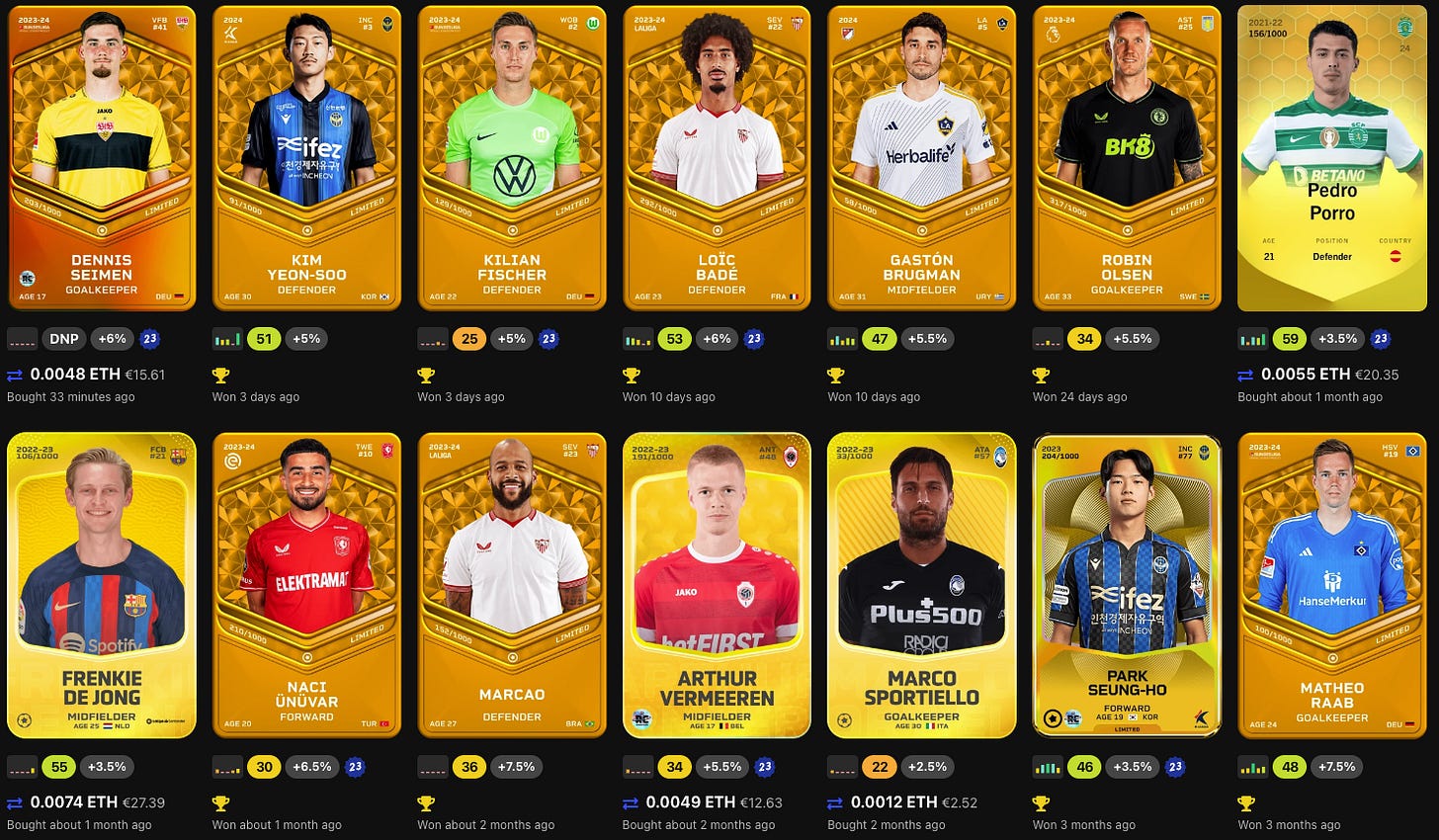 Now I want to buy the Bellingham and Halaand cards and that will be it, I won't be spending another penny on football player cards in the future, I've spent enough on Sorare so far. I'm going to have to make do with just the cards I've got, without putting my hand in the wallet, in order to maximise my profits and resell in 2032.